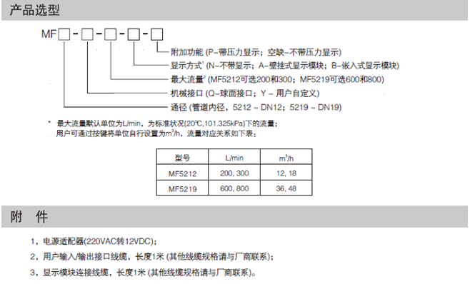 MF5219氣體(ti)質量流(liu)量計産(chǎn)品選型(xíng):